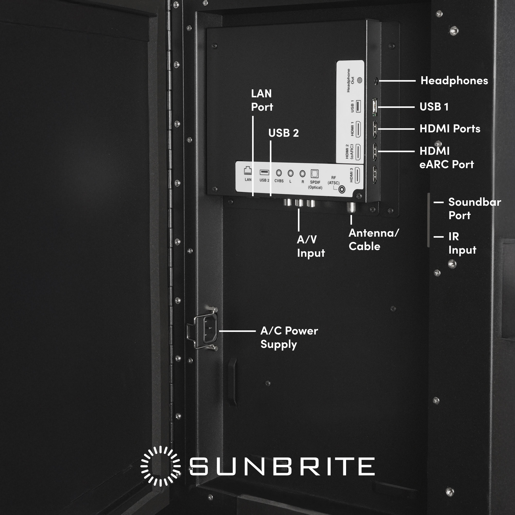 | Audio Out | Toslink Optical Audio (Fixed) / Analog 3.5mm (Variable) / SunBrite All-Weather Soundbar Port (Built-in Amplifier) |